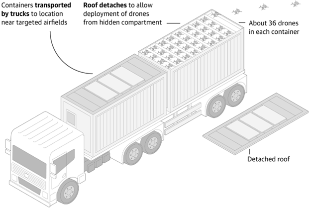A covert Ukrainian drone operation on June 1, 2025, that targeted five strategic air bases deep inside Russia. The drones were launched from disguised trucks already inside Russian territory.